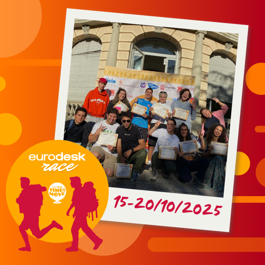 Eurodesk Race is a competition for 5 pairs of young people who from 15th to 20th of October will travel sustainably for more than 1000km across the north of Spain, from Galicia to Catalonia, to promote the Eurodesk network and the opportunities for European mobility.